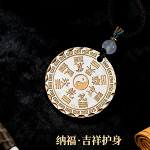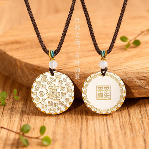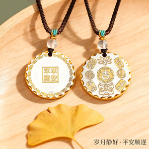 レトロな百福ラウンドペンダント、金塗装、ライオン覚醒、中国風模様、平和、喜び、無事、縁起の良い雲のネックレス、無垢の縁起の良い言葉