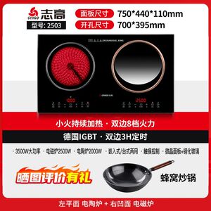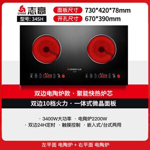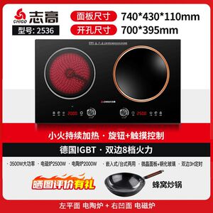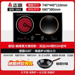 Chigo 埋め込み電磁調理器ダブルストーブ電気セラミックストーブ 3500 ワット凹面電磁調理器家庭用ハイパワーデスクトップセット
