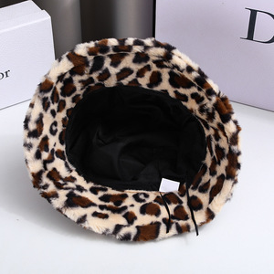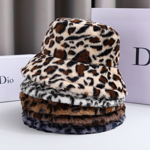 冬の女性用クロスボーダー帽子、女性用の小さなヒョウ柄フィッシャーマンハット、多用途の暖かい盆地帽子、豪華なバケットハット