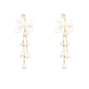 女性用の軽くて豪華なパールイヤリング、新しいニッチデザインのイヤリング、ロングリボンタッセルイヤリング、イヤリング