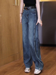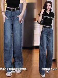 复古牛仔裤窄版弯刀阔腿裤女2025年新款春夏季高腰显瘦宽松弯刀裤