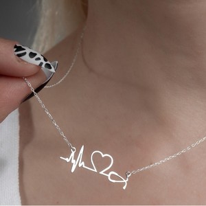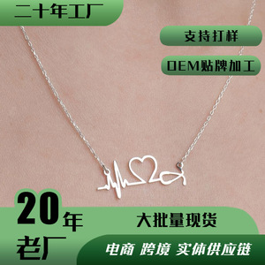 ニッチで多用途なクロスボーダーの新しいファッションシンプルな心電図ハートビートステンレススチールレディースネックレスハートネックレス