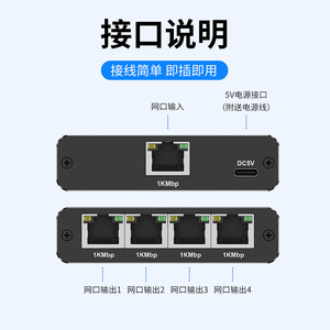 ギガビットネットワーク分配器1分2ネットワーク共有器ネットワークポート1分4 RJ45ネットワークケーブル分配器交換ルート