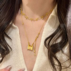 古法沙金工芸国潮風に四葉草の長い命の鎖のネックレスの復古の花の糸を入れてデザインしてペンダントの女性を包みます。