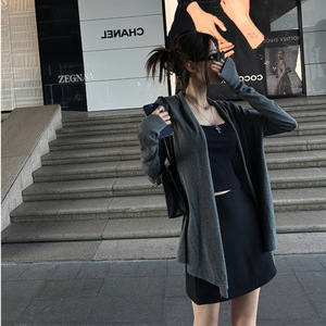 7831 秋冬レイジーカシミアグレーカーディガンVネック右肩ゆったりカバー不規則ショールセータージャケット