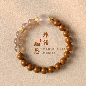 新中国式非遺品工芸合香珠小衆灰瑪瑙粉晶単輪手串上品アクセサリー女性ブレスレット卸売り