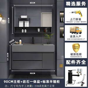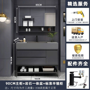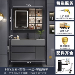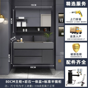 ナノロック下吊り洗面器-床置き-80CMライト高級ミラーキャビネット