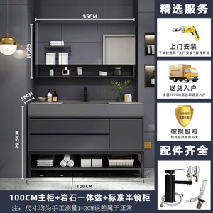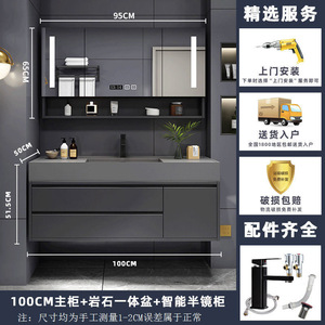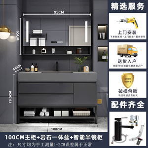 ナノロック下吊り洗面器-床置き-100CMライト高級ミラーキャビネット