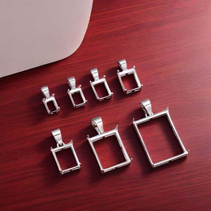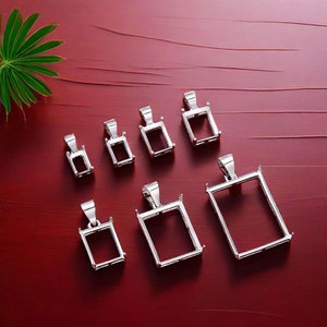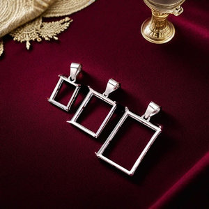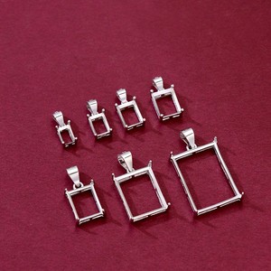 S925 シルバー プラチナ メッキ 長方形 シンプル 4 爪 クラシック ペンダント 空枠 絵付けなし 繊細 ファッション ライト 高級