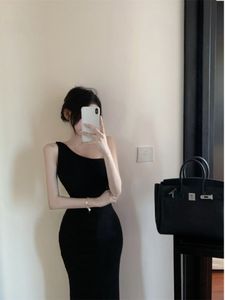 2025 デザインオフショルダースリムフィットドレス女性のための 2025 美しい気質黒バックレスヒップロングスカート