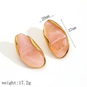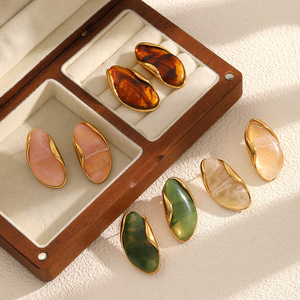 美ラード風樹脂ステンレスイヤリング女性ファッションレトロなカレー色18k真空メッキチタン鋼ピアス