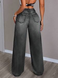 欧米のクロスボーダーのゆったりした腰のファッションの垂れ下がった感じの長い広足の潮のズボンの春秋のストレートな筒の新型の復古のジーパンの女性