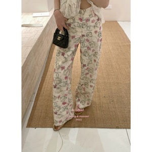 純綿小香風手描き椿プリント生地 240 グラム花柄パンツスーツ生地
