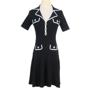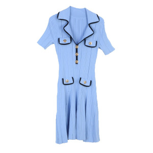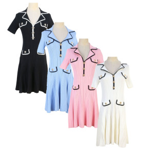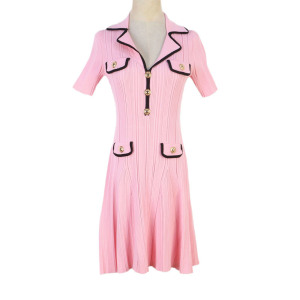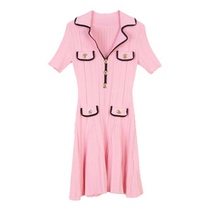 25家2025年早春新作レディーススーツカラーショートスリーブスリムフィットウエストシェイプエレガントフレンチスタイルニットワンピース
