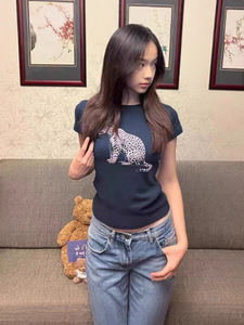 夏の新型韓国ins小衆超火豹紋プリントがスリムに見えます。
