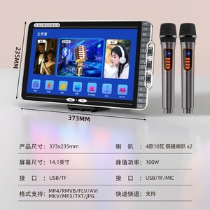 Jinzheng E12 HD ビデオプレーヤー ワイヤレスマイク カラオケオーディオ スクリーン付き カラオケ視聴および歌唱機