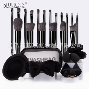 メイクブラシ27本セット - ブラックとシルバーの14本