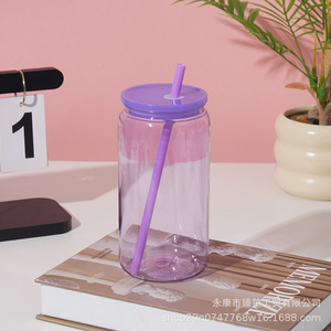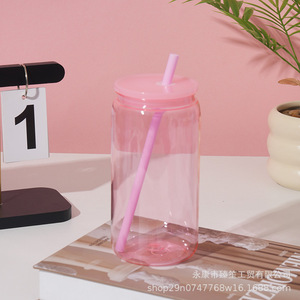 跨境糖果色pc塑料杯16oz环保塑料梅森杯工厂直出大容量水杯可logo