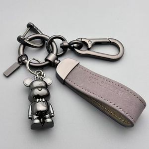 かわいいアニメの熊の暴力的な熊の金属のキーホルダーの男女の自動車のペンダントのキーホルダーの高級な革紐は掛けます。