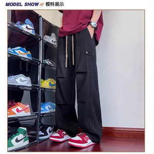 ジーパンの男性の金の春の夏の水洗いのレトロなアメリカのファッションのブランドのゆったりしている広脚のまっすぐなズボンの高い街の工装の長いズボン
