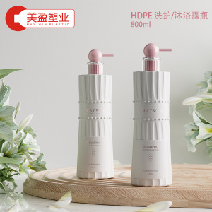 HDPE洗浄保護/入浴露瓶800mlの白い瓶がポンプの瓶を押して縦縞の形の瓶があります。