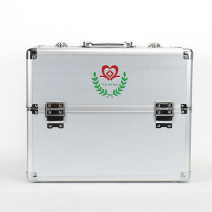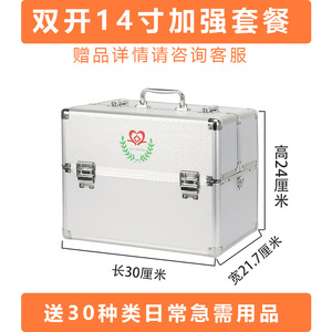 ダブルオープン医療ボックスポータブル家庭用医療ボックスアルミ合金家族インチ緊急救助多層医療ボックスポータブル