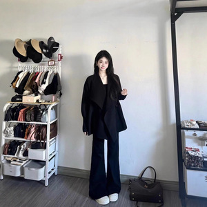 套装女2025春季韩系感收腰针织毛衣外套高腰显瘦阔腿裤两件套