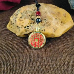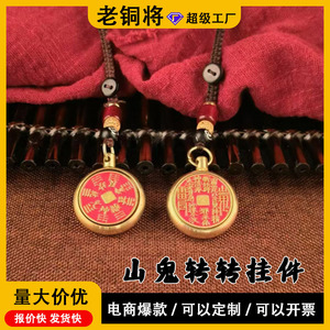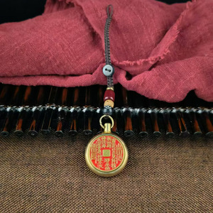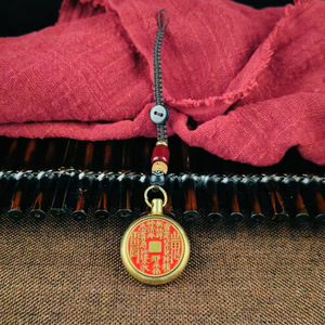 銅辰砂山鬼花八卦金回転十二支中空ひょうたんキーホルダーペンダント