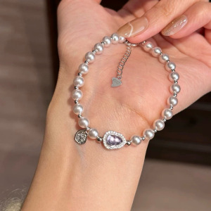 天然アメジスト幸運ひょうたんマンタローズパールスターリングシルバーブレスレットライト高級レディースブレスレット