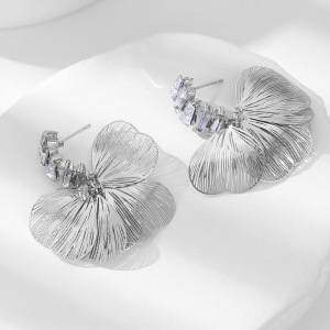銀針ジルコンは貝殻の花のフリンジのイヤリングをまねます。