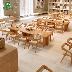 ログスタイル読書室テーブルと椅子の組み合わせ無垢材会議テーブル自習室休憩エリア受付交渉図書館テーブルと椅子