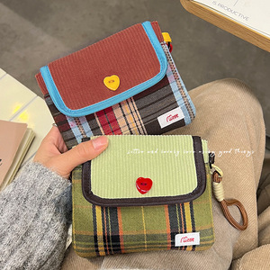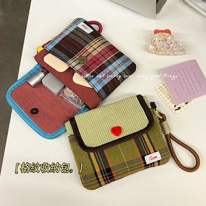 レトロな格子縞の生理用ナプキンの化粧ポーチは携帯大容量のおばさんを収納しています。