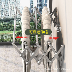 ステンレス製伸縮式物干しラック、折りたたみ式物干しラック、屋外プッシュプル物干しロッド、バルコニー窓外物干しラック