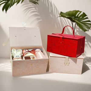 ライトラグジュアリーウェディングブライズメイドベストマンポータブルギフトボックスフリップカバーレリーフレトロレザーシンプルなビジネスギフトボックス