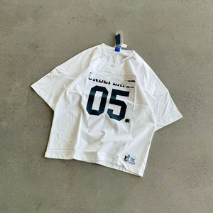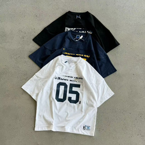 ハイバージョン アメリカン レトロ スポーツ ルーズ カジュアル ヘビー 半袖 Tシャツ No.05 5本ストライプ 大きいサイズ 男女 カップル