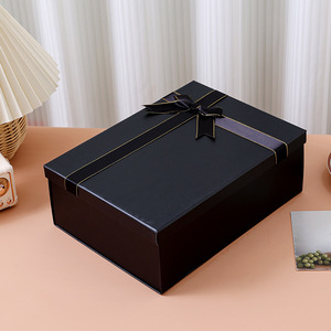 折りたたみなしの天蓋リボンギフトボックス卸売ライト高級ワンピース靴と衣類大型黒ハイエンドギフトボックス