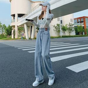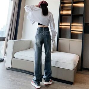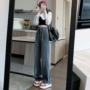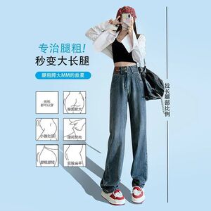 直筒牛仔裤女2025早秋新款宽松高腰薄款拖地阔腿裤ins高街潮