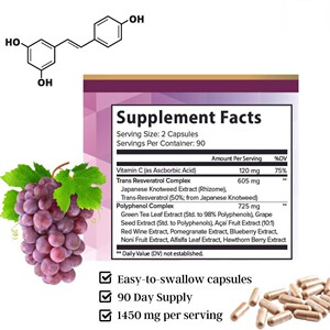 レスベラトロールカプセル180粒 レスベラトロールカプセル 輸入供給 グレープシードエキスカプセル