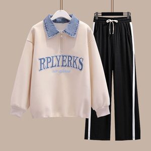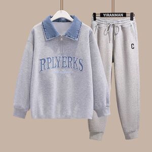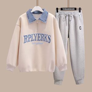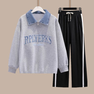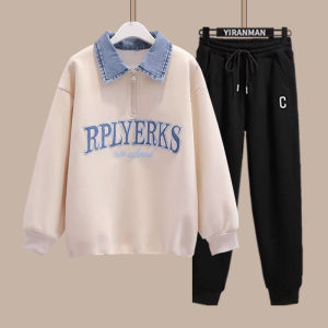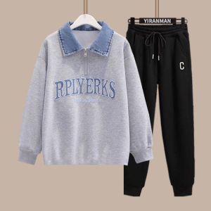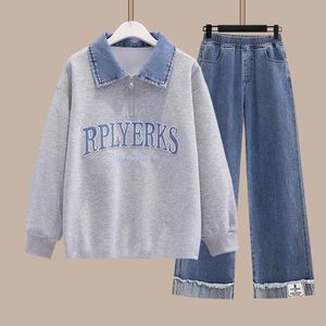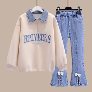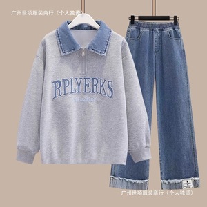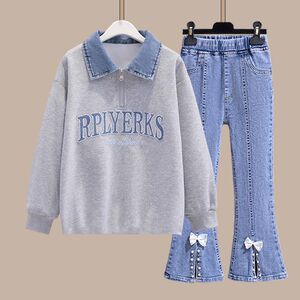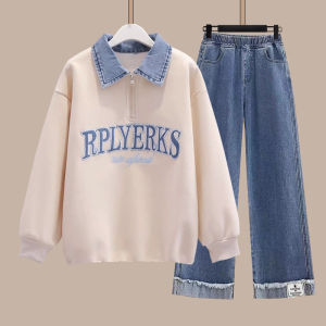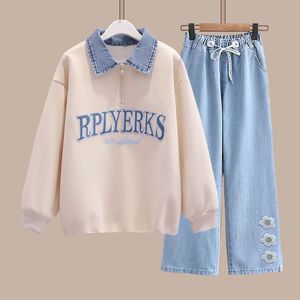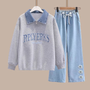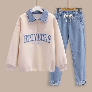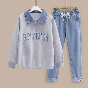 2025春秋新中学生女装セット学院風polo襟衛衣ジーンズシングル/セット2セット