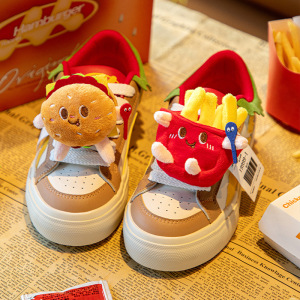 ハンブルク靴女の子スポーツシューズ 2025 春の新子供の漫画厚底白靴学生パン靴トレンディな