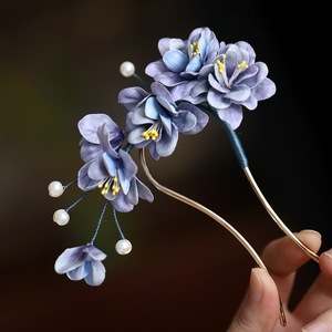 古代風の花の頭飾りサイドクリップ、古典的なチャイナドレスと漢服のバックプレスアクセサリー、唐風のヘアピンサイドクリップ、超妖精