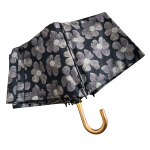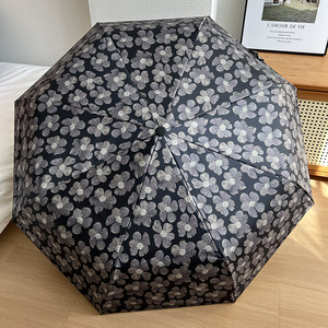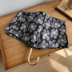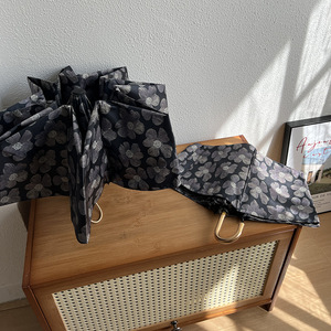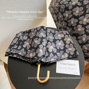 Posa高颜値禁欲系黒花フック日焼け止め三つ折り折り畳み雨傘女晴雨両用日傘