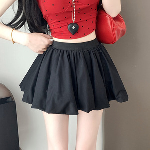 白色甜美减龄蓬蓬半身裙女装夏季高腰防走光裙裤花苞短裙a字裙子