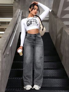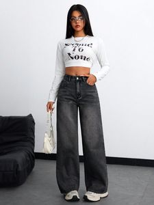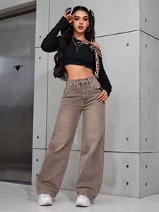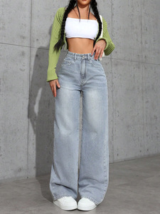 工場直販、ヨーロッパとアメリカのクロスボーダー新作、対外貿易、大きいサイズ、薄手デニムワイドレッグパンツ、女性用ハイウエストマルチポケットストレートパンツ