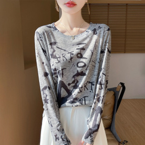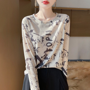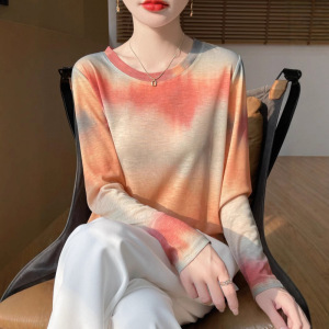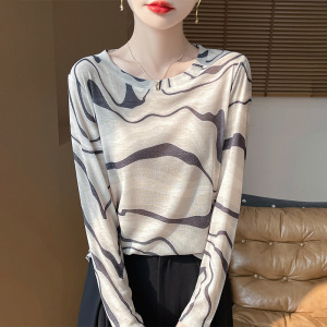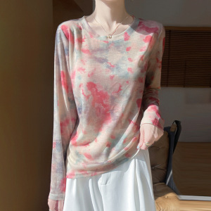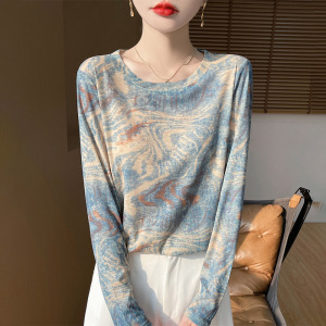 25春夏新款晕染印花设计感圆领女士轻薄透气内搭针织长袖防晒衫潮