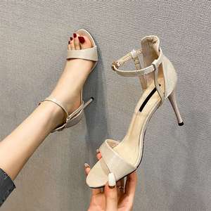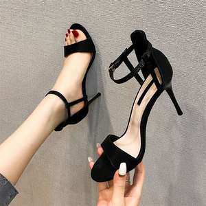 スティレットハイヒール 2025 春多用途夏黒ヌードワンラインバックルサンダル女性のためのトレンディな妖精スタイル