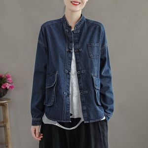 レトロな文芸盤は立襟のデニムのショートコートを掛けます。