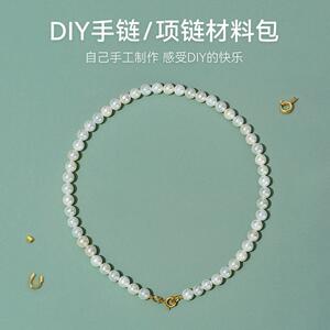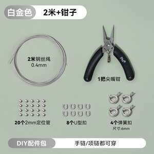 diy材料包批发14K包金钢丝线穿珍珠手链项链饰品串珠弹簧扣材料包