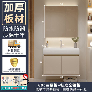 インテリジェントな完全密閉ミラーキャビネット [白に交換可能] - 60CM ウォールキャビネット + 肌に敏感な一体型洗面器 + 付属品のフルセット