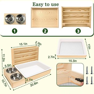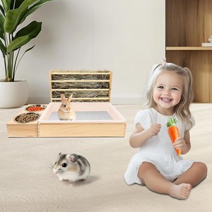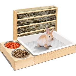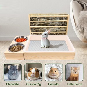 ウサギの干し草フィーダー木製お手入れ簡単猫トイレ付き草フィーダーモルモットハムスターノームウサギの餌箱